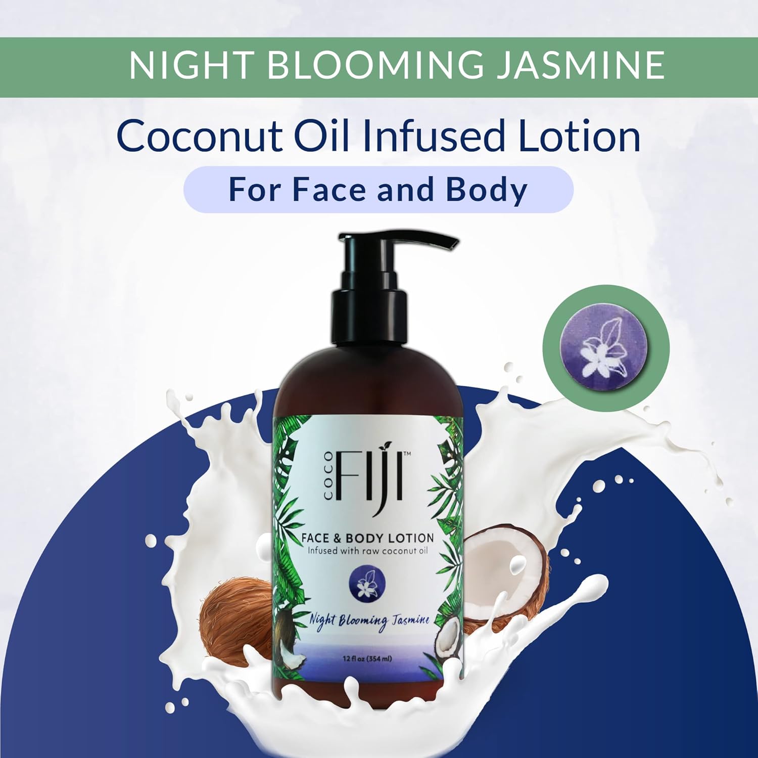 Coco Fiji Face & Body Lotion Infused With Coconut Oil | Lotion for Dry Skin | Moisturizer Face Cream & Massage Lotion for Women & Men | Night Blooming Jasmine 12 oz, Pack of 3