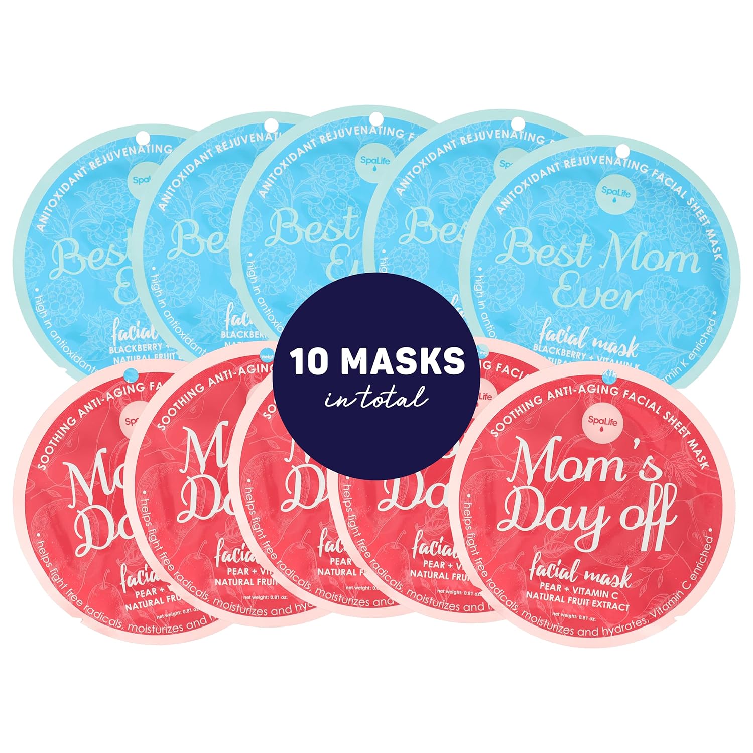 SpaLife Made for Mama Facial Mask Duo – Antioxidant Rejuvenating & Soothing Anti-Aging Facial Sheet Masks – Face Masks Skincare Set – Hydrating Face Masks – 10 Pack – Natural Fruit Extract Formulas