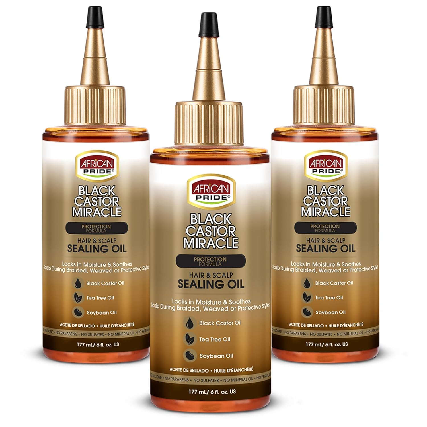 African Pride Black Castor Miracle Hair & Scalp Sealing Oil – Hair Oil with Black Castor, Tea Tree & Soybean Oil for Moisture Lock, Scalp Relief & Growth Support | 6oz (Pack of 3)