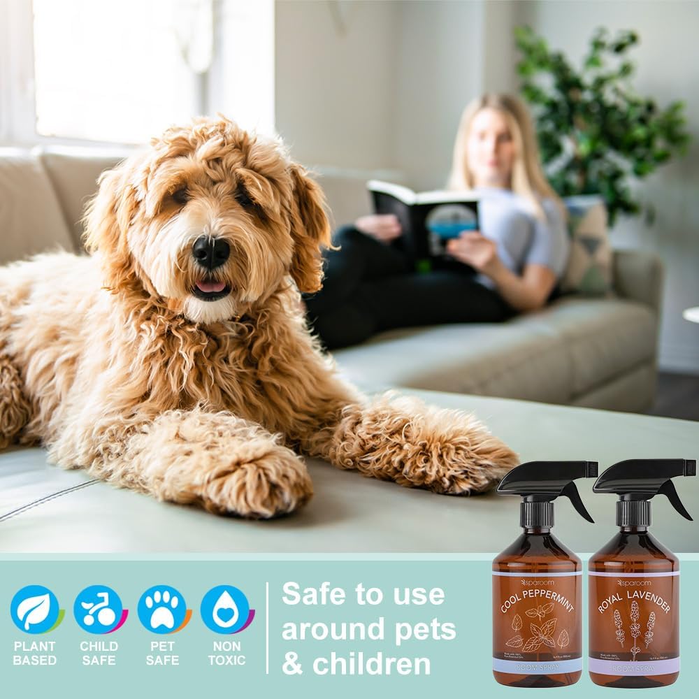SpaRoom Linen Spray 2-Pack Combo – Cool Peppermint & Royal Lavender Aromatherapy Set with Essential Oils, Mist for Bedding, Linens, and Home – 2 x 16.9 oz Variety Pack