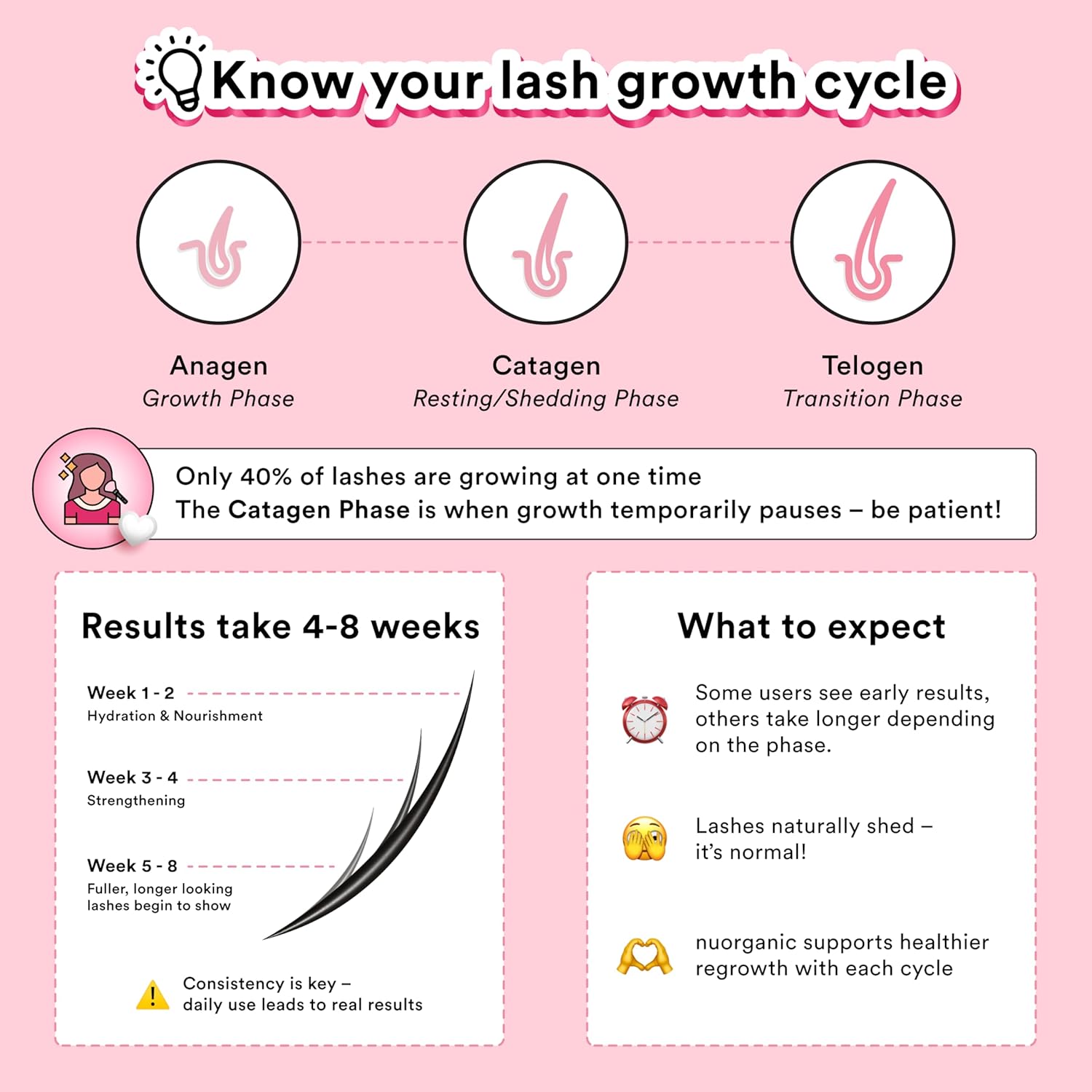 - World-Leading Science, Made In The USA — All NuOrganic beauty products, including our eye lash serum growth, are developed in the USA by leading scientists and cosmetologists. Created to the highest standards, our eyelash serum growth formula is free from toxins and prostaglandins, so you can nourish your lashes with confidence.