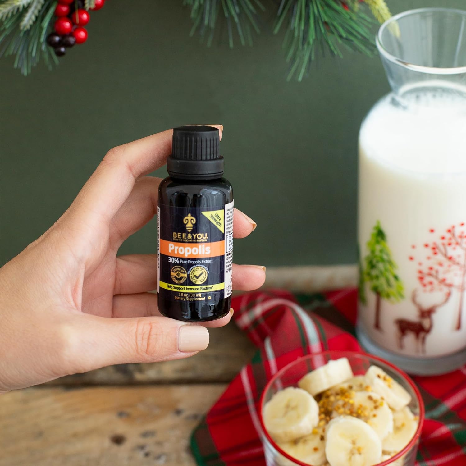 - ANATOLIAN PROPOLIS EXTRACT: Propolis is a natural product that honeybees collect from plants, such as leaves, buds, and stems. We obtain our propolis from our own contracted beehives in the pristine Anatolian mountains, which are known for their diverse plant life, with 12,000 different species. BEE&YOU also has a patented extraction technology to extract all the antioxidants resulting in a product that contains at least 100x more antioxidants than the highest-grade Manuka Honey. Made in Türkiye.