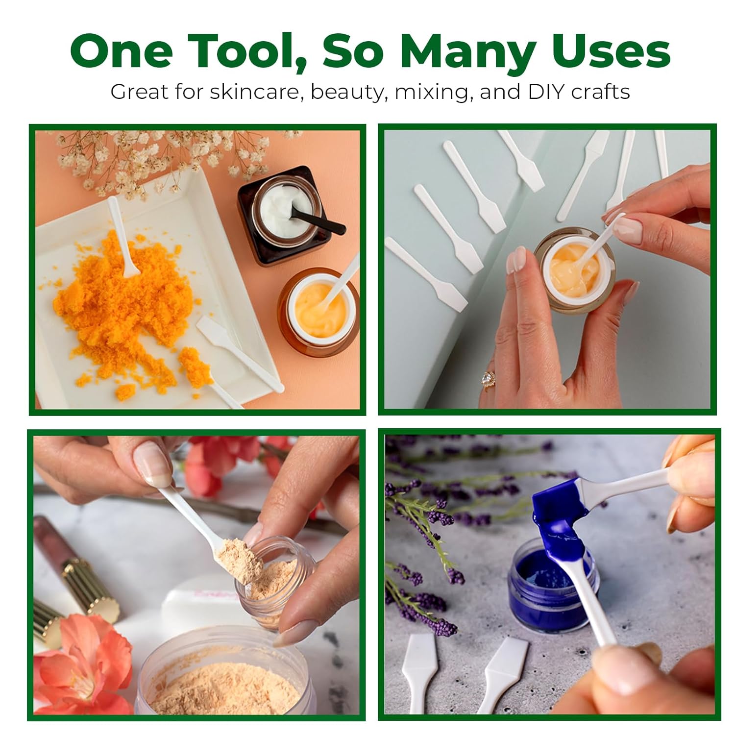 - DIY Skincare Creations: Our disposable spatulas for cosmetics are the perfect skincare tools for mixing your homemade skincare concoctions, including face masks, creams, and more. Plus, use these disposable makeup applicators for sampling or applying products