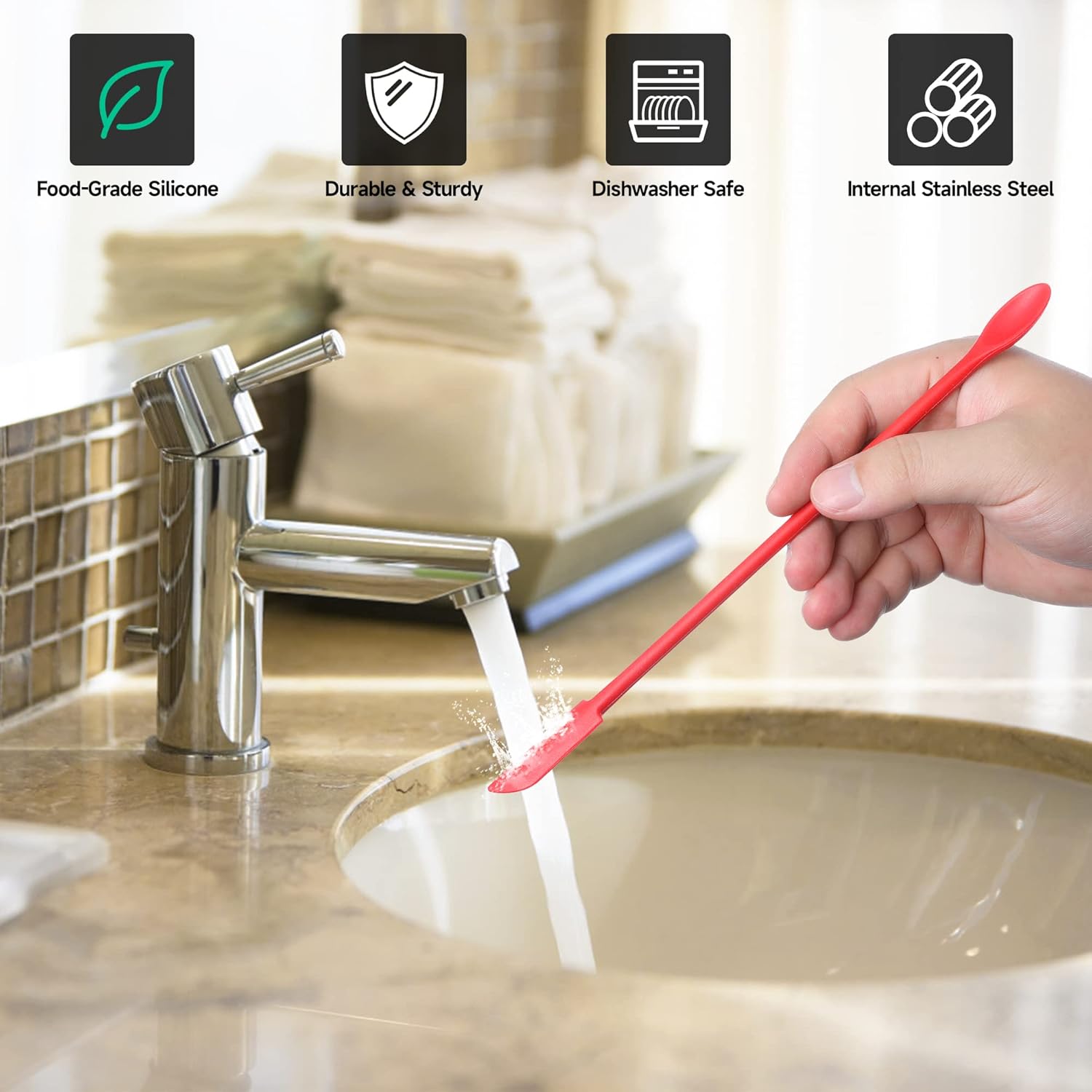 - No Waste of Any Little -- The makeup silicone spatula has a long enough body and narrow head for reaching food in jars and other tnarrow spaces,even for bottle with slight opening,you will not waste.