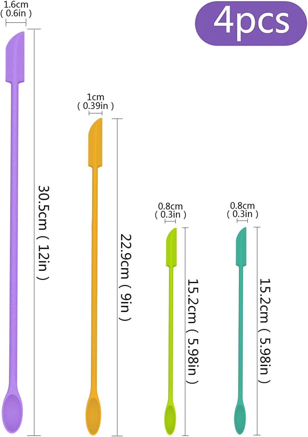 Mini Spatula Silicone Spatula Set - 4pcs Small Makeup Scrapers for Cosmetics, Reusable Beauty Tiny Tools, Thin Jar Scraper, Get the Last of the Makeup Out of the Bottle(Candy Colors)