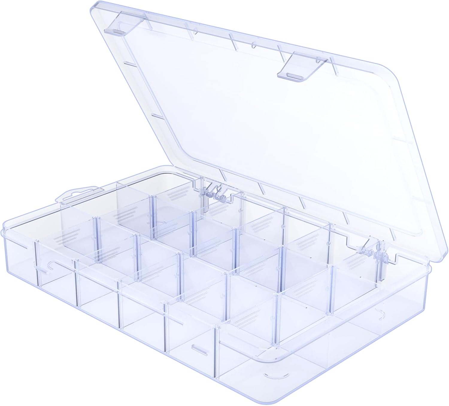 Large18 Grids Clear Organizer Box Snack Box with Removable Dividers for Fishing Hook,Bead Organizer Case,Plastic Storage Containers for Small Parts