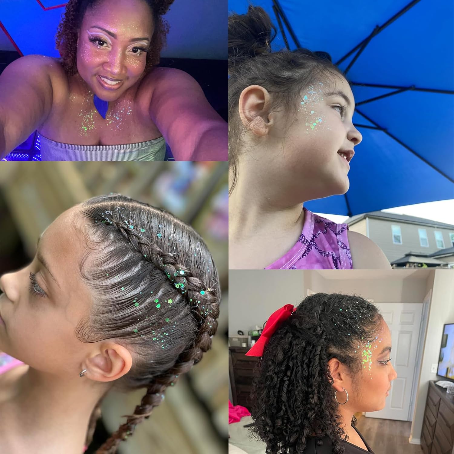 - Easy To Clean ---- When put on, this body glitter for women stays throughout the whole time but washes off easily with just soap and water.Suitable for mardi gras carnival,EDM Music Festival Rave Accessories,Sexy Singer Concerts,children party,rave festival,wedding receptions,hen do fun,celebrations like the school color party,Halloween,Christmas,bar,nightclub,night party, performanceparty,Halloween,Christmas,bar,nightclub,night party, performance