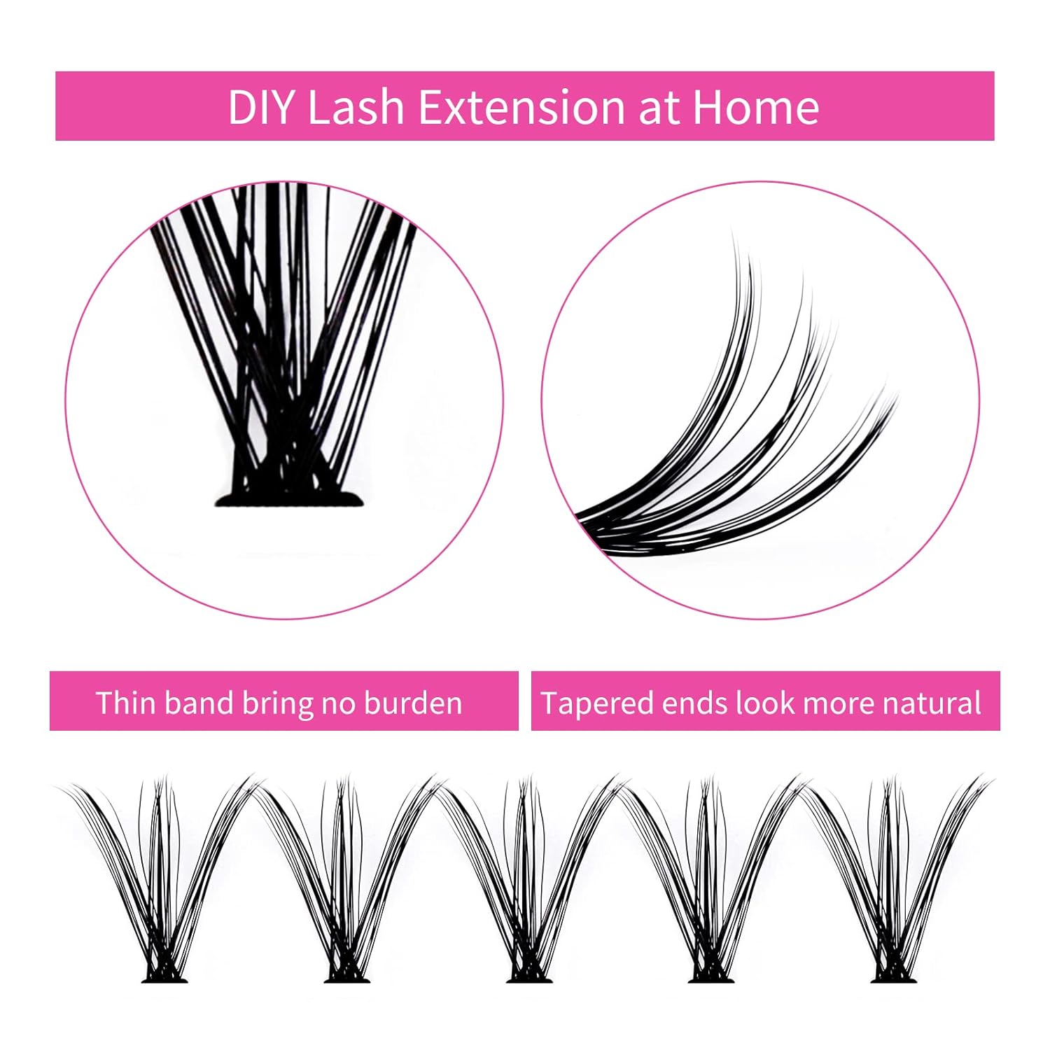 - 【Suitable to wear】:Gently dab the cluster lash glue on your natural lashes or on the cluster lash band, and then apply the cluster lashes in the way you like. If needed, brush a thin layer of sealer for reinforcement. The bottom of the clusters is flat and hardly noticeable.The lash band part will not stab your eyelid area when you blink.