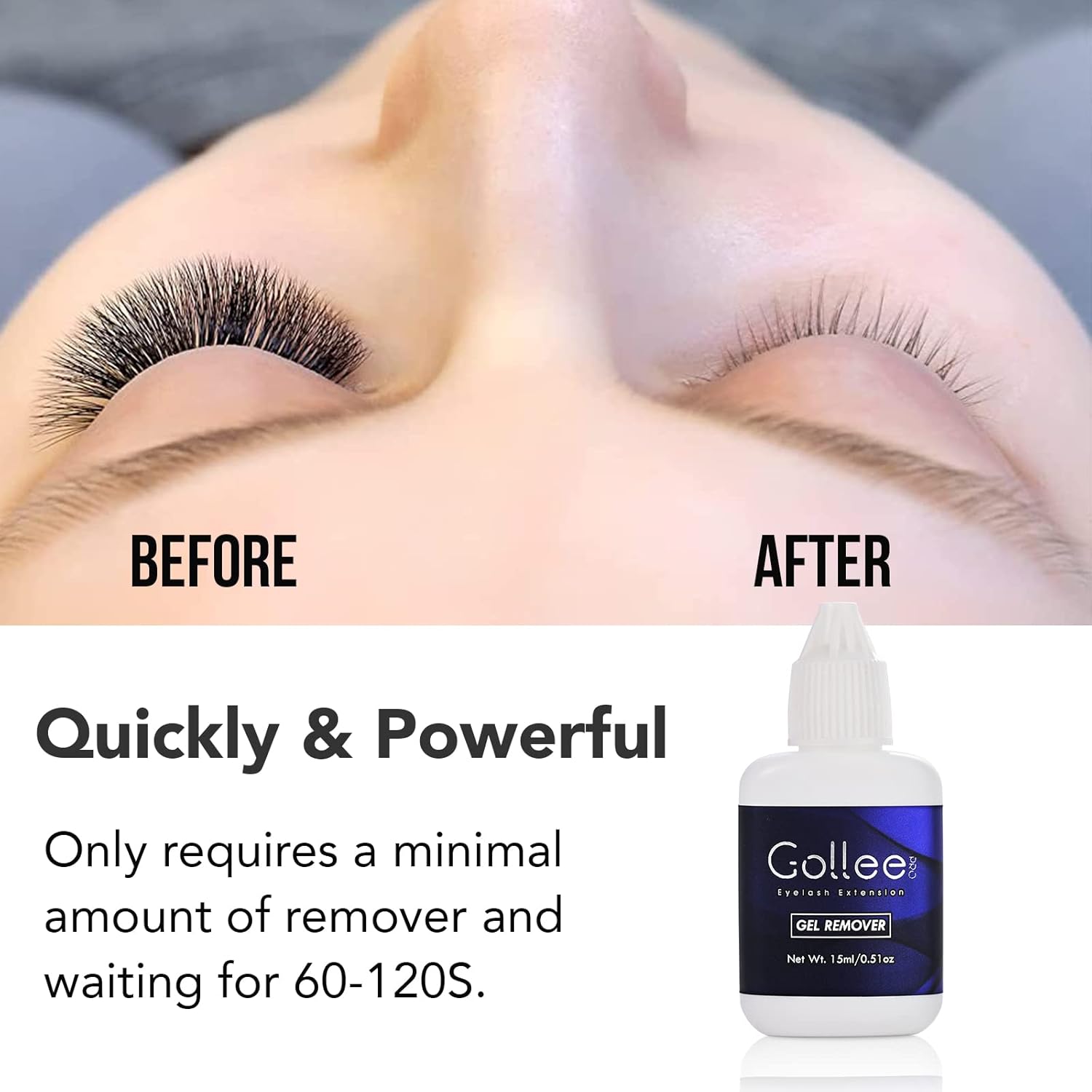 - ✅GOLLEEPRO Lash Remover for Lash Extensions,transparent gel-like, light and delicate texture. Low odor, no tears, mild and pure. Effectively dissolves the adhesive within 60 seconds for easy removal of eyelash extensions.