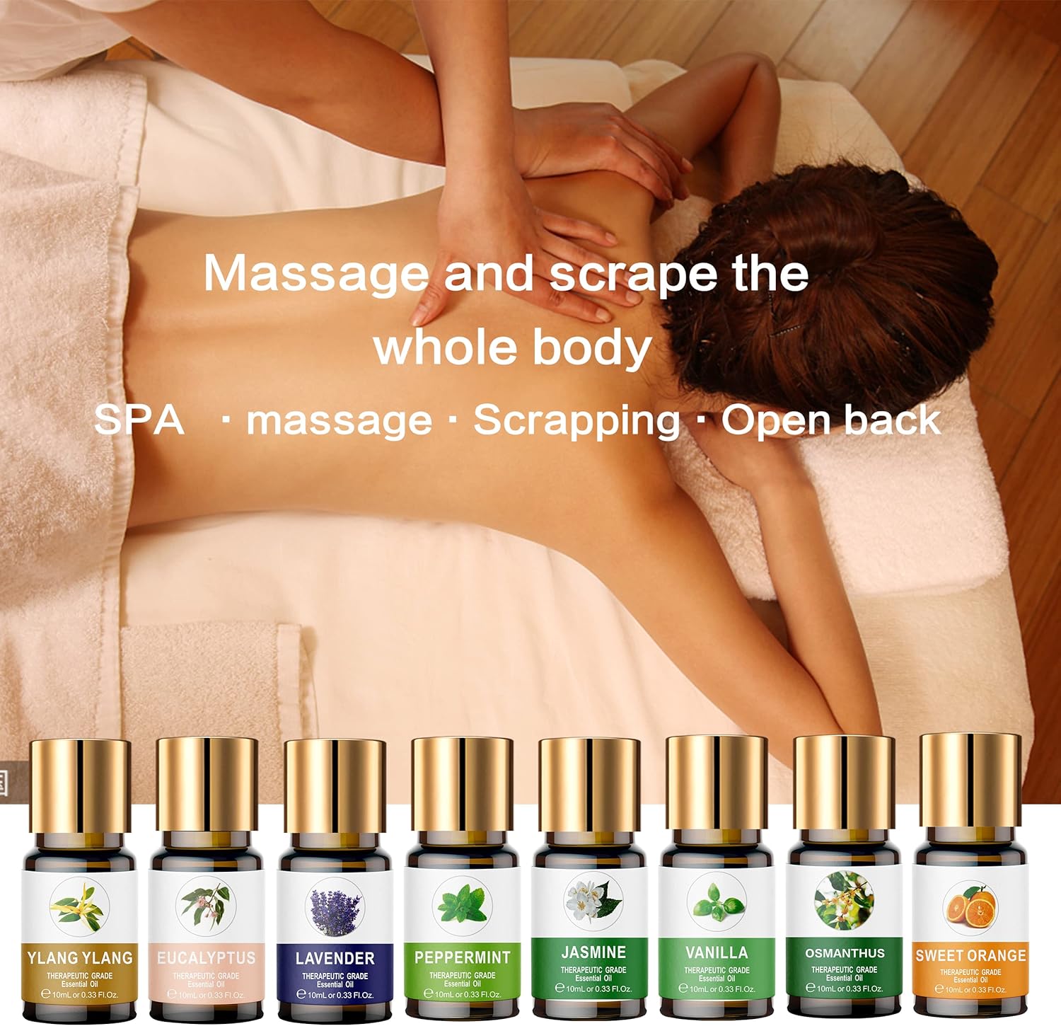 - 8 BOTTLES DIFFERENT FRAGRANCE OIL - - The organic essential oils with 8 different scence, include Ylang Ylang, Patchouli,Osmanthus, Jasmine,Vanilla,Sweet Orange, Peppermint,Lavender .