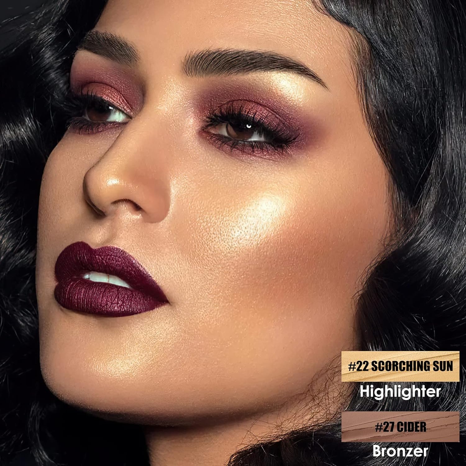 - Create 3D Makeup Effect:This contour stick set has a radiant bronzer and a shimmering highlighter to give skin a warm, natural glow. It melts beautifully into skin, never feeling sticky or greasy, and gives skin a revived and youthful look.