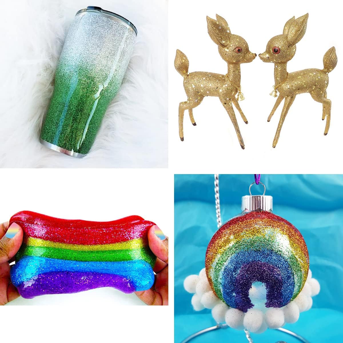 - π.Widely used and Plenty contents: Extra fine glitters can be used in craft making,resin ornament making,holiday decoration,resin jewelry making,epoxy resin tumbler,diy slime,nail art,body art,eye makeup,etc, and it can mix well with a gallon of paint and It sticks great with the paint.