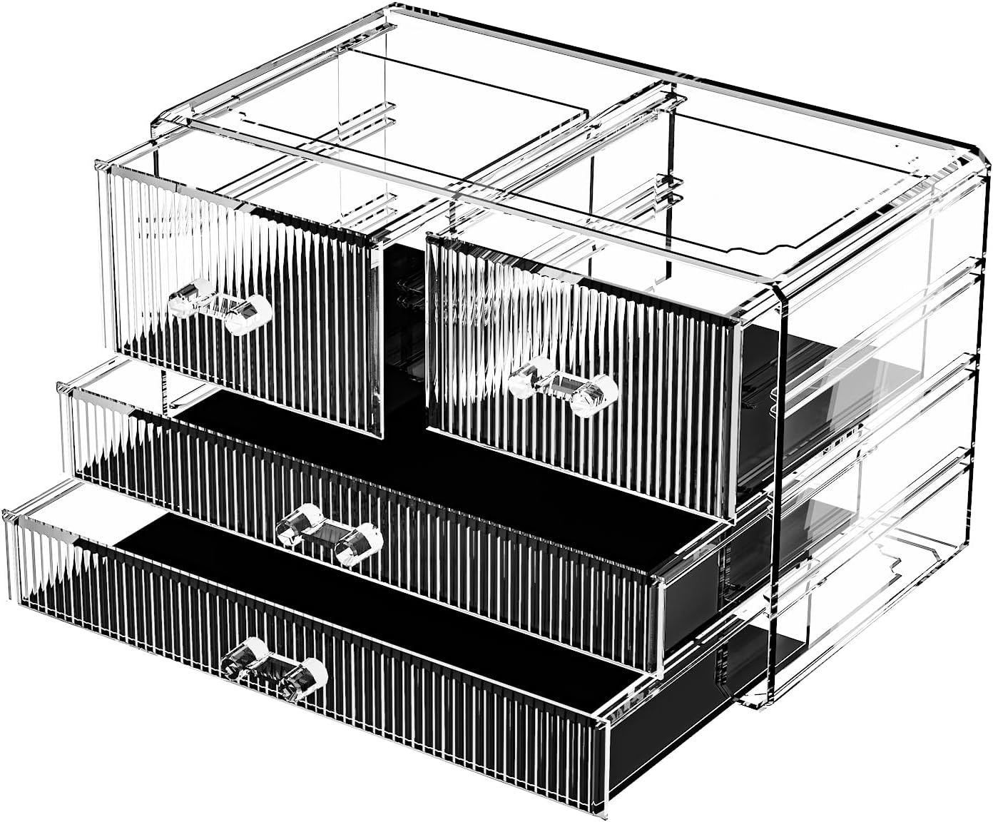 ZHIAI Stackable Storage Drawers, Acrylic Bathroom Counter Organizer Clear Makeup Organizers for Vanity, Kitchen Cabinets, Bathroom, Undersink, Home Organization and Storage (4 Drawers, Pattern D)