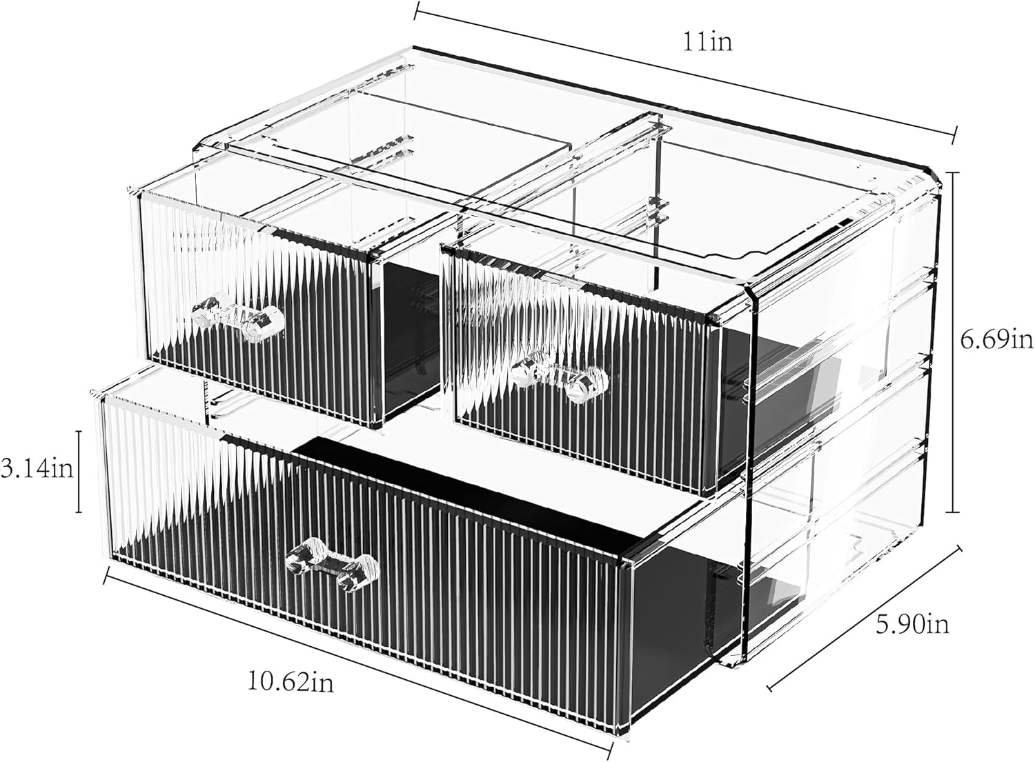 ZHIAI Stackable Storage Drawers, Acrylic Bathroom Counter Organizer Clear Makeup Organizers for Vanity, Kitchen Cabinets, Bathroom, Undersink, Home Organization and Storage (3 Drawers, Pattern A)