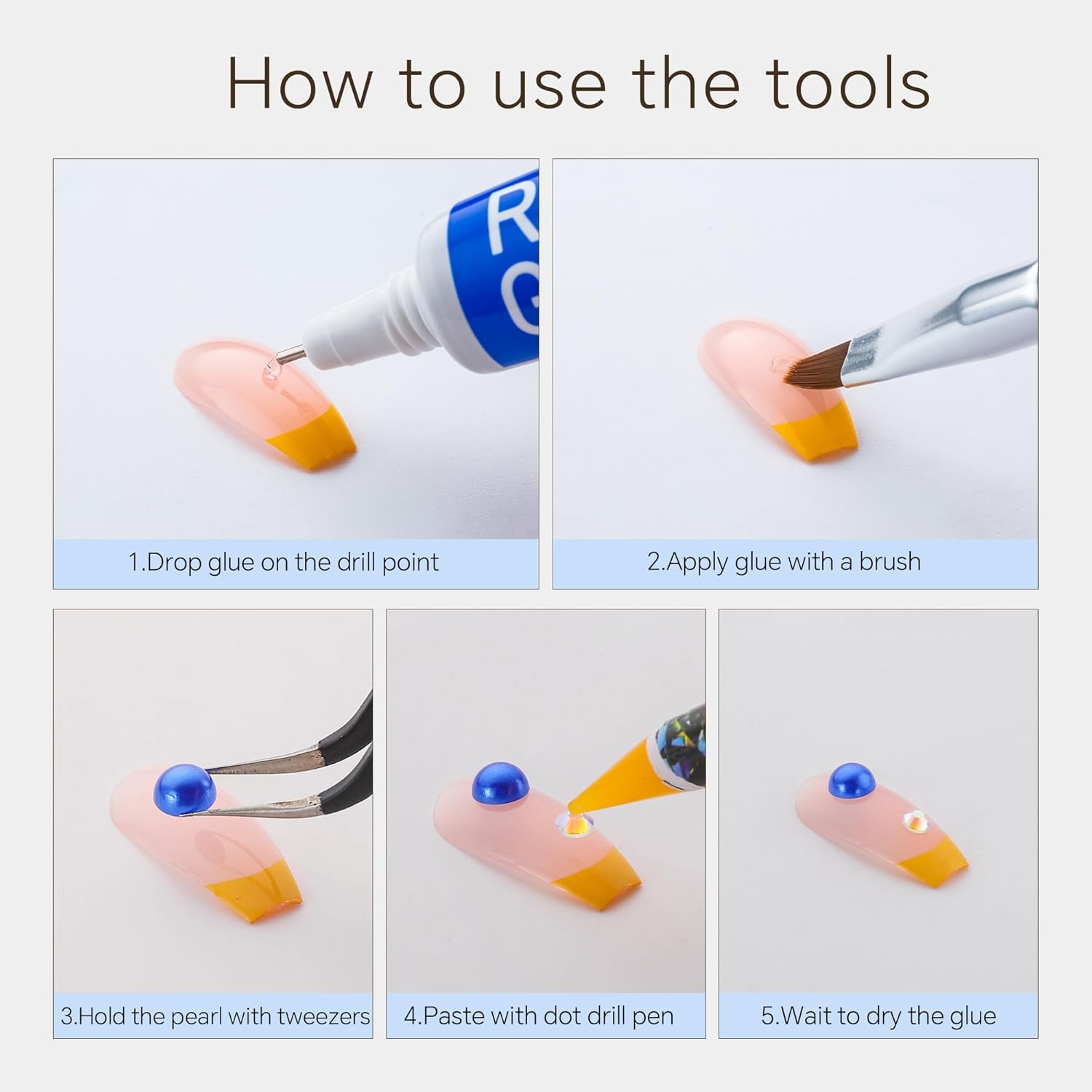 - Useful tools - These pearls and rhinestones have a flat back, which is excellent for easy placement.and you can pick up any large or small pearls and rhinestones with the crayons we bring along. And use the brush to smooth out the Gel , these tools will work very well.