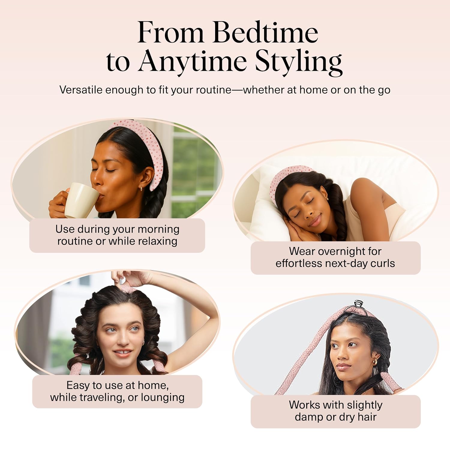 - COMFORTABLE & EASY TO USE – DAY OR NIGHT: Designed for all-day comfort or overnight curls, this soft heatless curler is lightweight, secure, and stylish enough to wear while getting ready or lounging. Just wrap your hair around the hair rod, secure with the included scrunchies, and relax—no heat, no fuss.