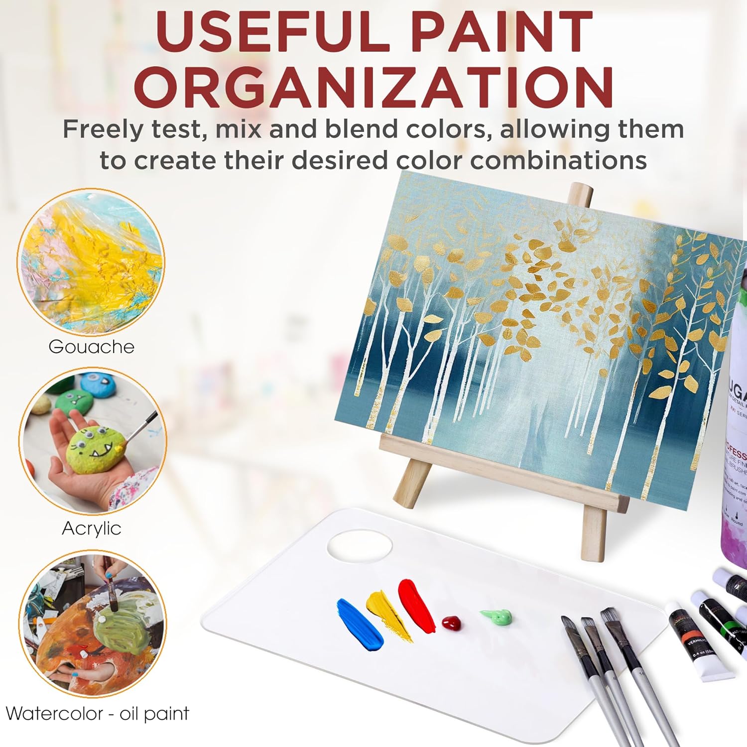 - Useful Paint Organization: The palette serves a simple yet crucial function for art enthusiasts. It provides a surface where artists can freely test, mix and blend colors, allowing them to create their desired color combinations.