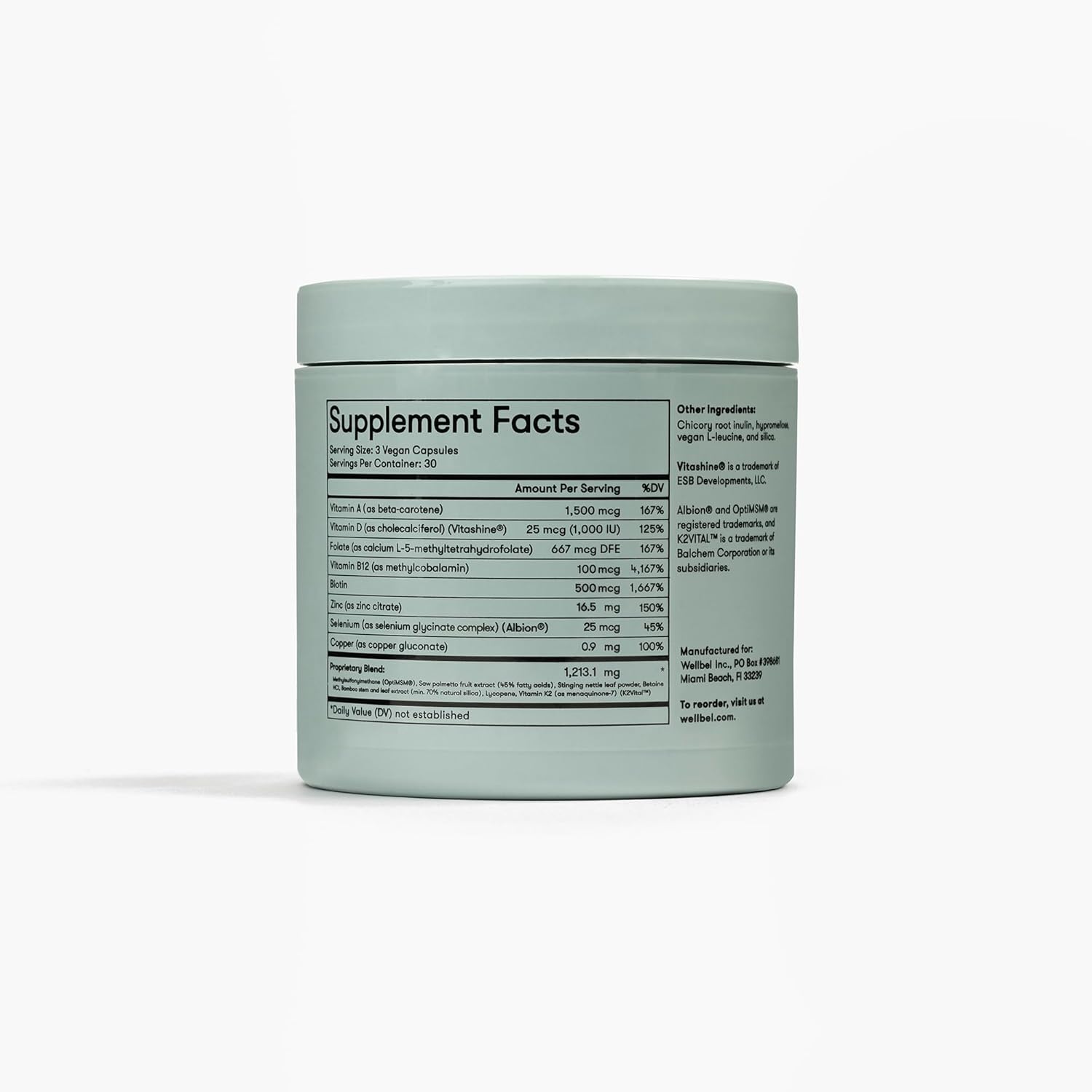 WELLBEL Women + Clean Supplement for Hair, Skin, and Nails, Vegan, Gluten Free, Non GMO 90 Count