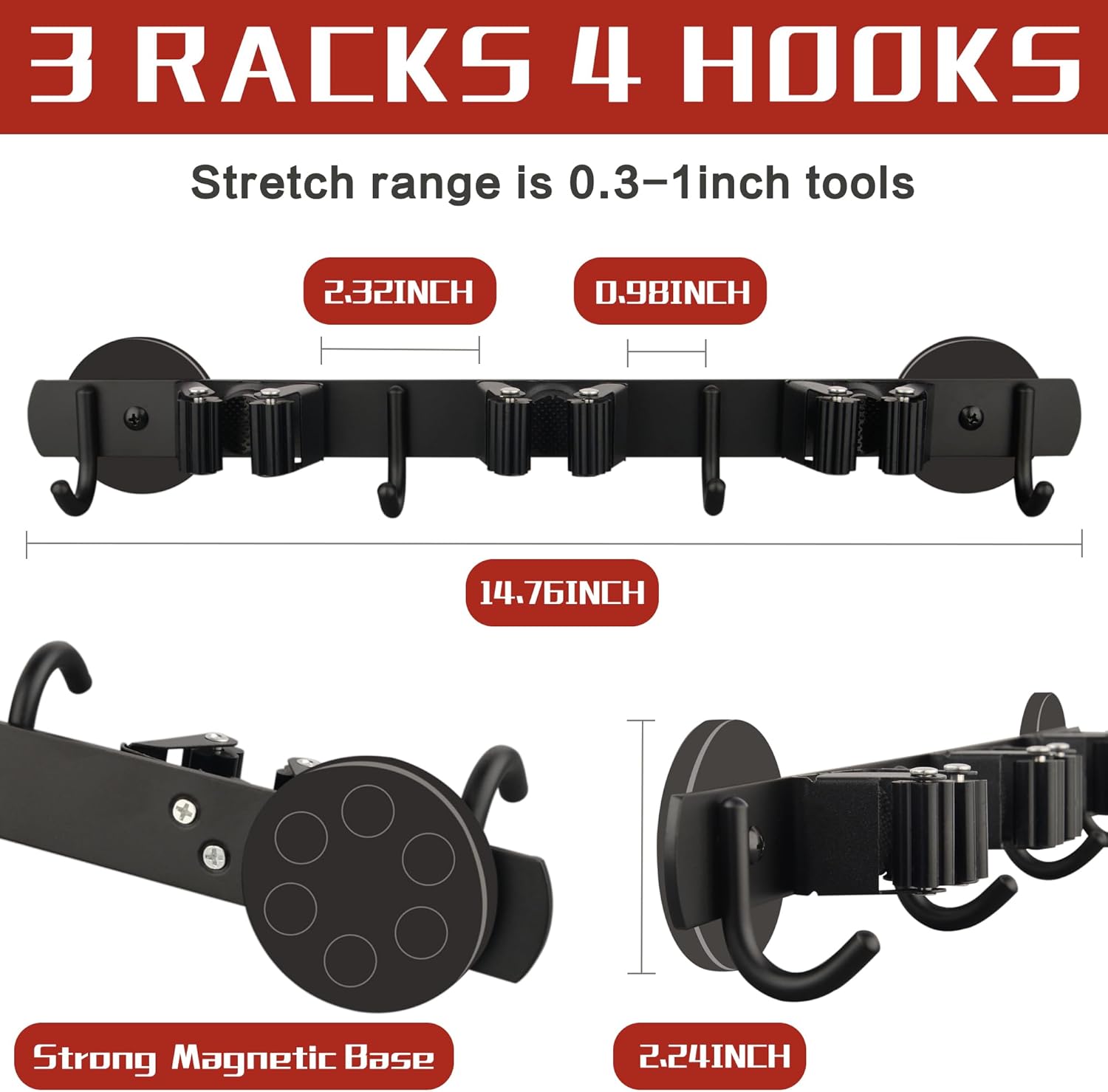 - [Heavy Duty Magnetic Mop Holder Rack]: Can be attaches to any metal surface. Rubber coated magnetic base prevents scratching and sliding. You can easily hang mops, brooms, rags and other cleaning tools, so that your home more tidy and orderly