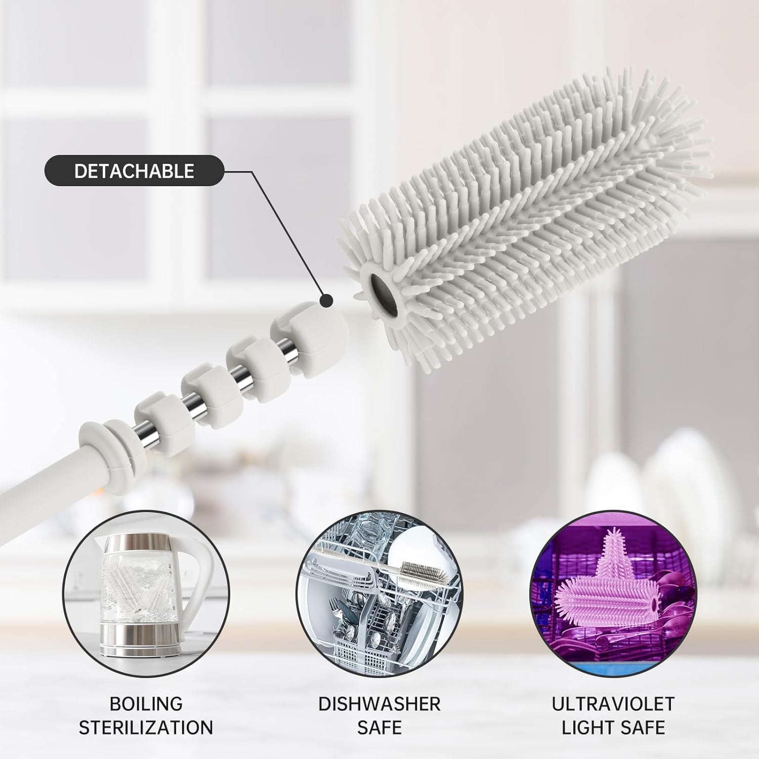 - Deep Cleaning Coverage: With two brush head sizes and the extra-long handle, our brush reaches every corner of your containers for comprehensive cleaning. The brush heads detach from the handle for easy cleaning, and the tight connection design ensures they don't fall off during use