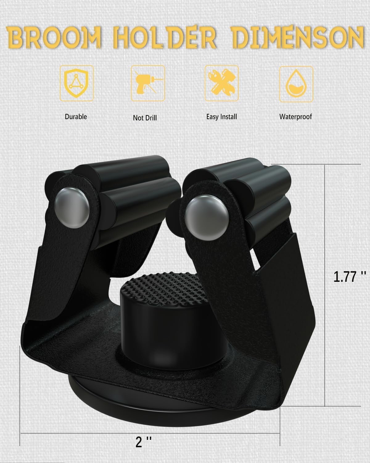 - Magnetic base: magnetic mop broom holder base are rubber coated magnets; the rubber surface protect the adsorbed object and will not allow external stains to pollute the magnet inside; so they can be applied outdoors for a long time with confidence