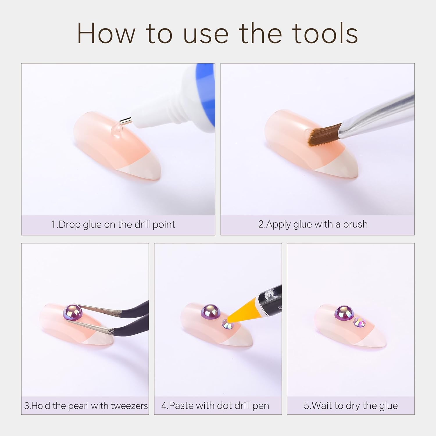 - Useful tools - These pearls and rhinestones have a flat back, which is excellent for easy placement.and you can pick up any large or small pearls and rhinestones with the crayons we bring along. And use the brush to smooth out the Gel, these tools will work very well