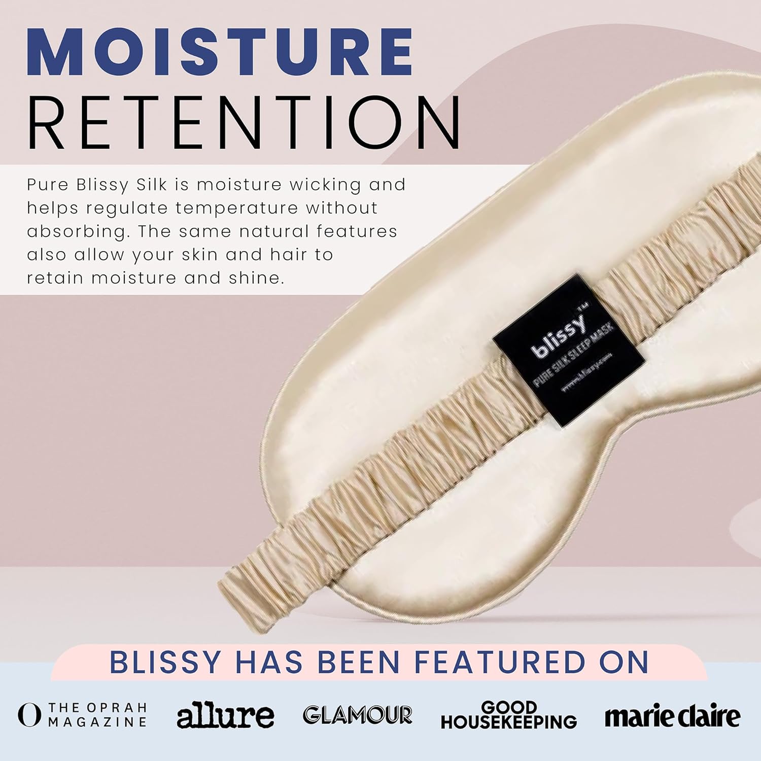- TOTAL BLACKOUT - If you're looking to completely block out the light, our Blissy Silk Sleep Mask is perfect for you! Made with 100% pure Mulberry silk and 22 momme 6A grade fibers, this mask will keep the light out and help you get a good night's sleep.