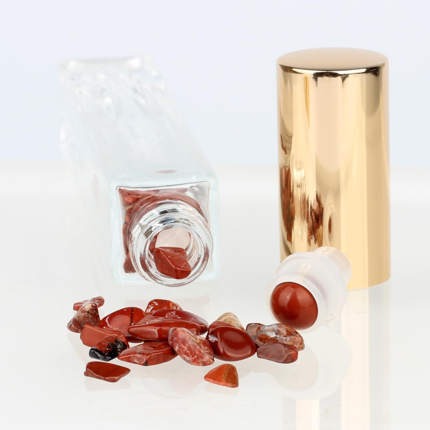 10ml Gemstone Roller Square Bottles Refillable Roll On Bottles Healing Crystal Chips Inside For Perfumes Aromatherapy Oils 5pack