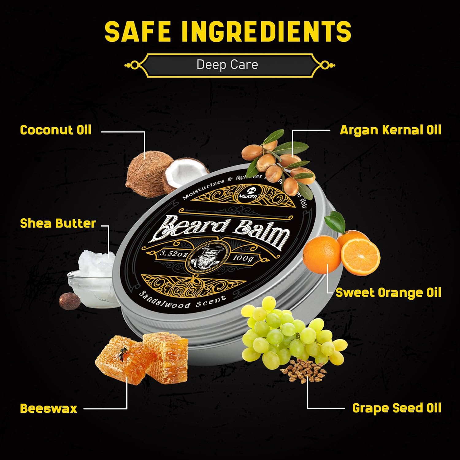 MEKER Beard Balm, Beard Softening Leave-in Balm with Brush, All-Natural Anti-Itch, Organic Beard Conditioner for Softening, Stops Itch, Grows, 3.52 OZ