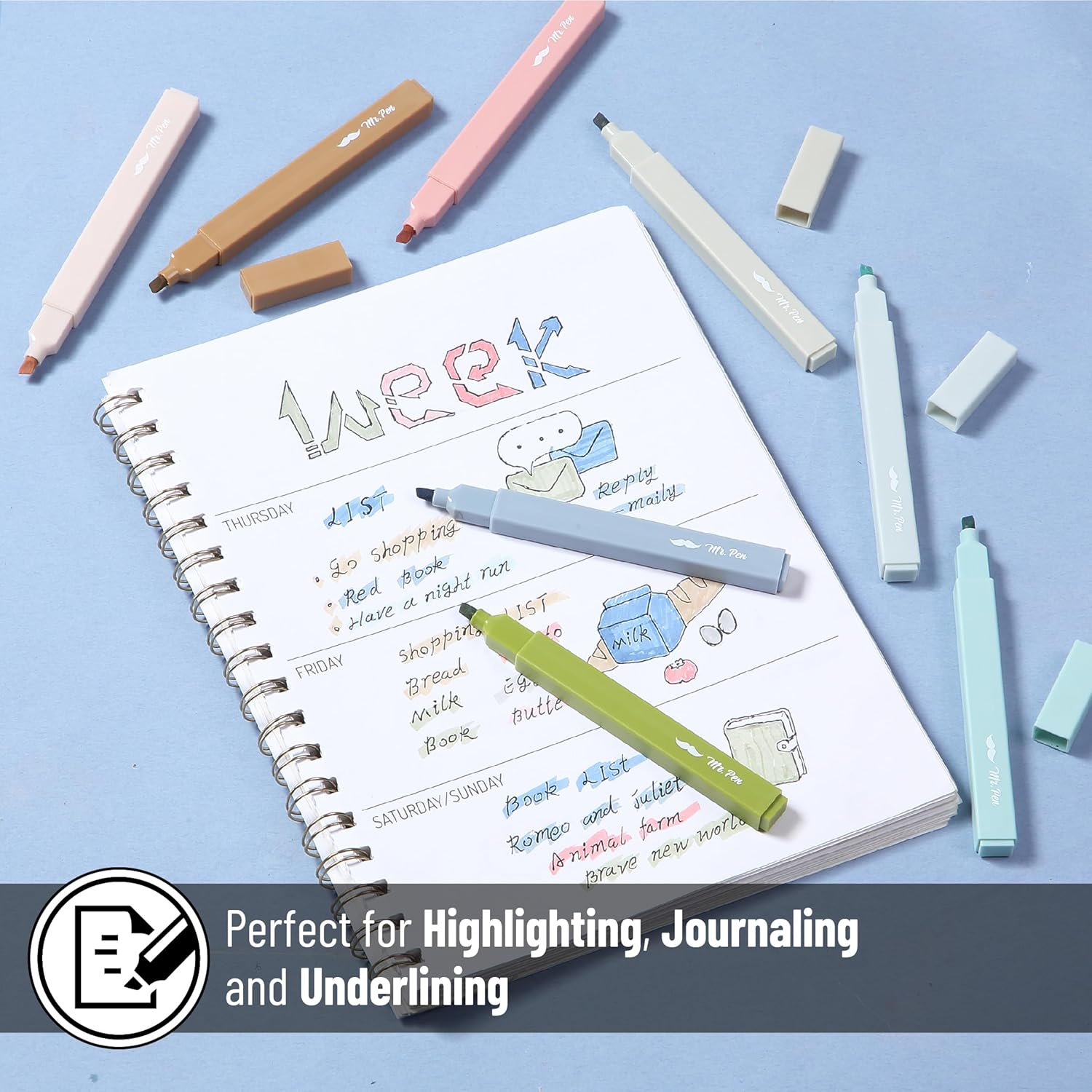 - Mr. Pen aesthetic highlighters come in a set of 8 soothing, natural earth tones, perfect for adding subtle elegance to your notes and projects.