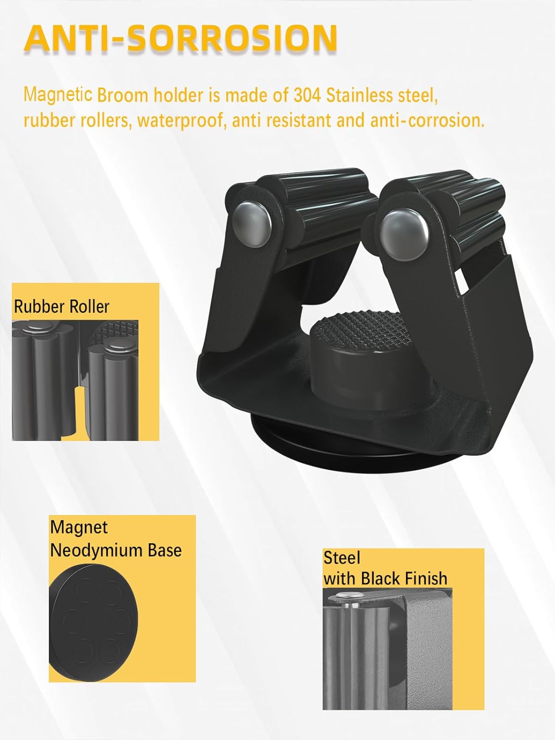 - No Slip Design: Magnetic broom holder with silicone rollers, increase grip and easily secure wet tools without slipping off easily