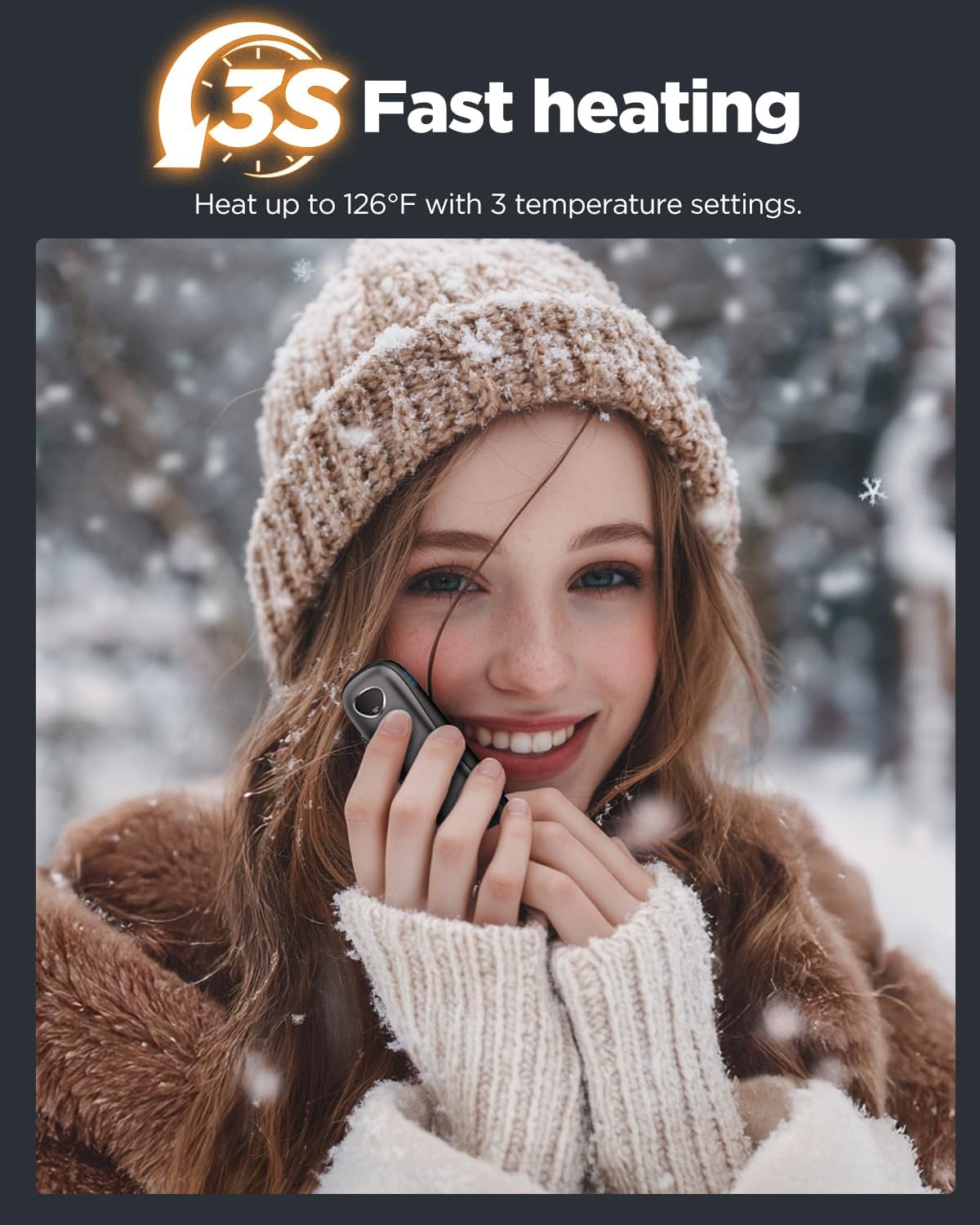 - 【What’s Included】: Comes in premium gift packaging, including 2xhand warmer, velvet bag, silicone lanyard, 2xUSB-C Charge Cable, user manual, 24-month warranty, and 24-hour customer service; Stay warm and ready for the winter ahead.