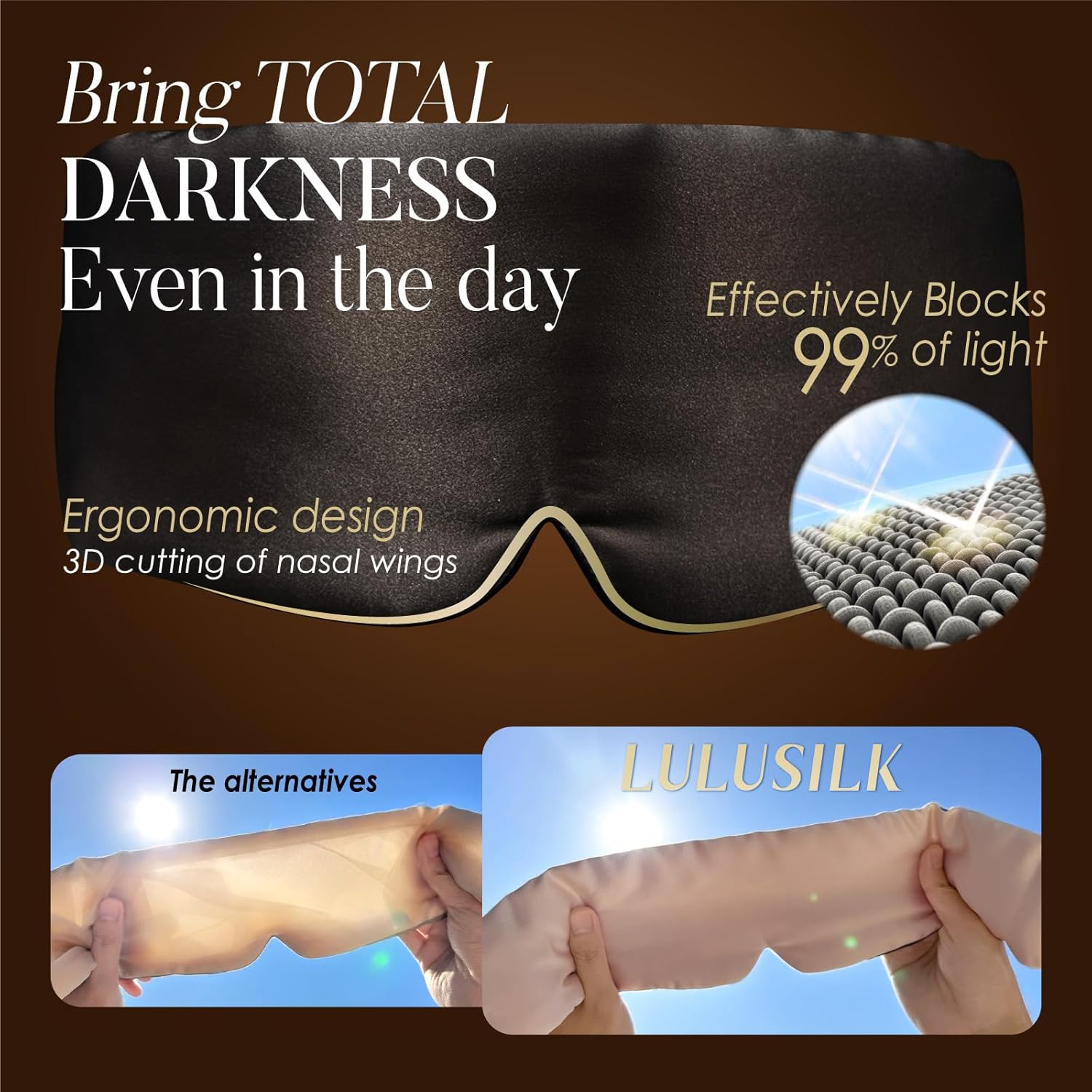 - LIKE WEARING A CLOUD: What does a cloud feel like? Maybe soft, gentle, light-as-air, and breathable. Wear LULUSILK silk sleep mask is just like wearing a cloud since this eye mask can provide you with all the feelings you can imagine when you think of a cloud. No impressions on your face, no creasing in your hair. On the contrary, the special amino acids in silk material will nurture your skin and hair