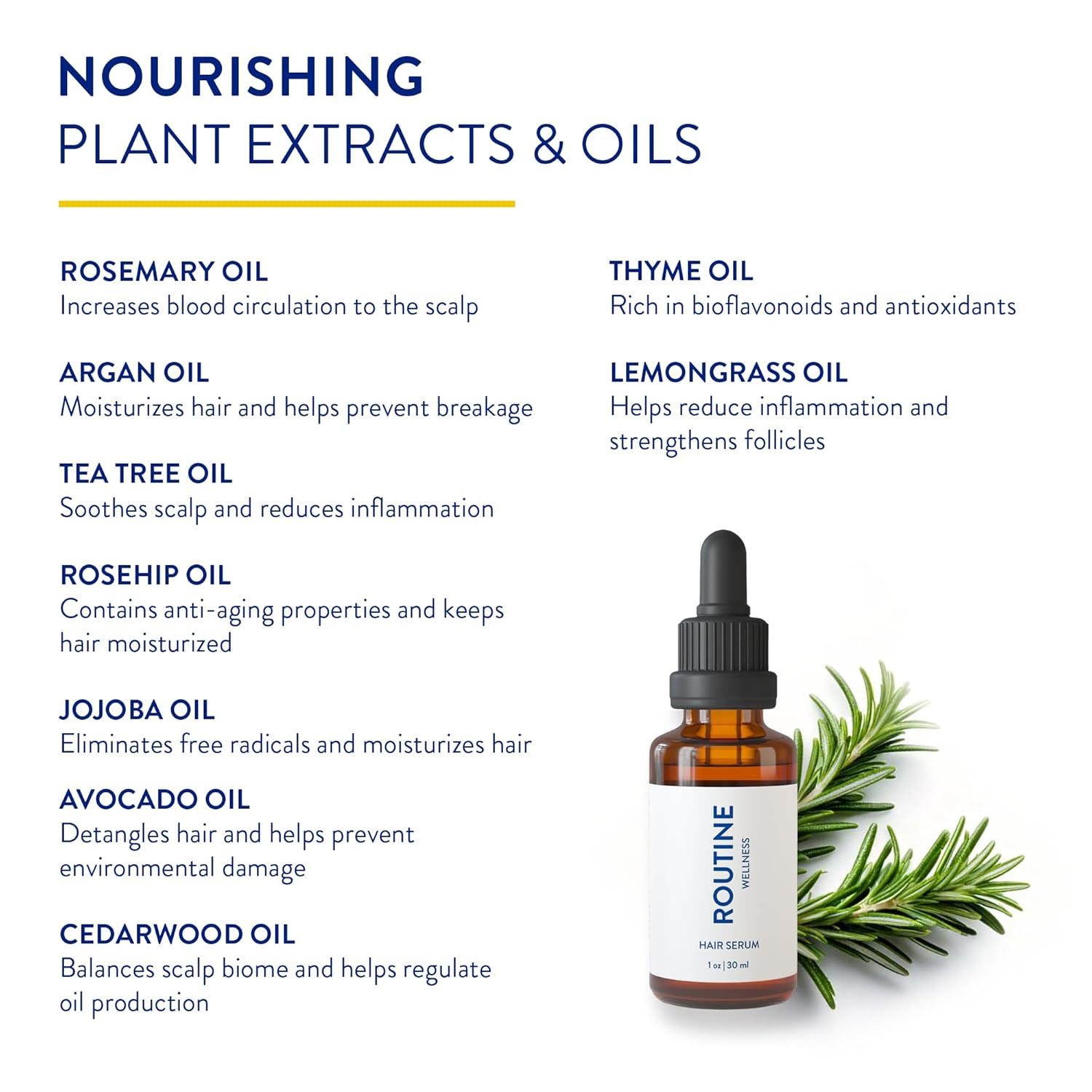 - PREMIUM INGREDIENTS: Routine Wellness Hair Serum features key ingredients such as rosemary oil, known for its hair enhancement properties, tea tree oil and argan oil. Our advanced hair serum harnesses the power of nutrients to boost the effectiveness of your everyday hair care routine.