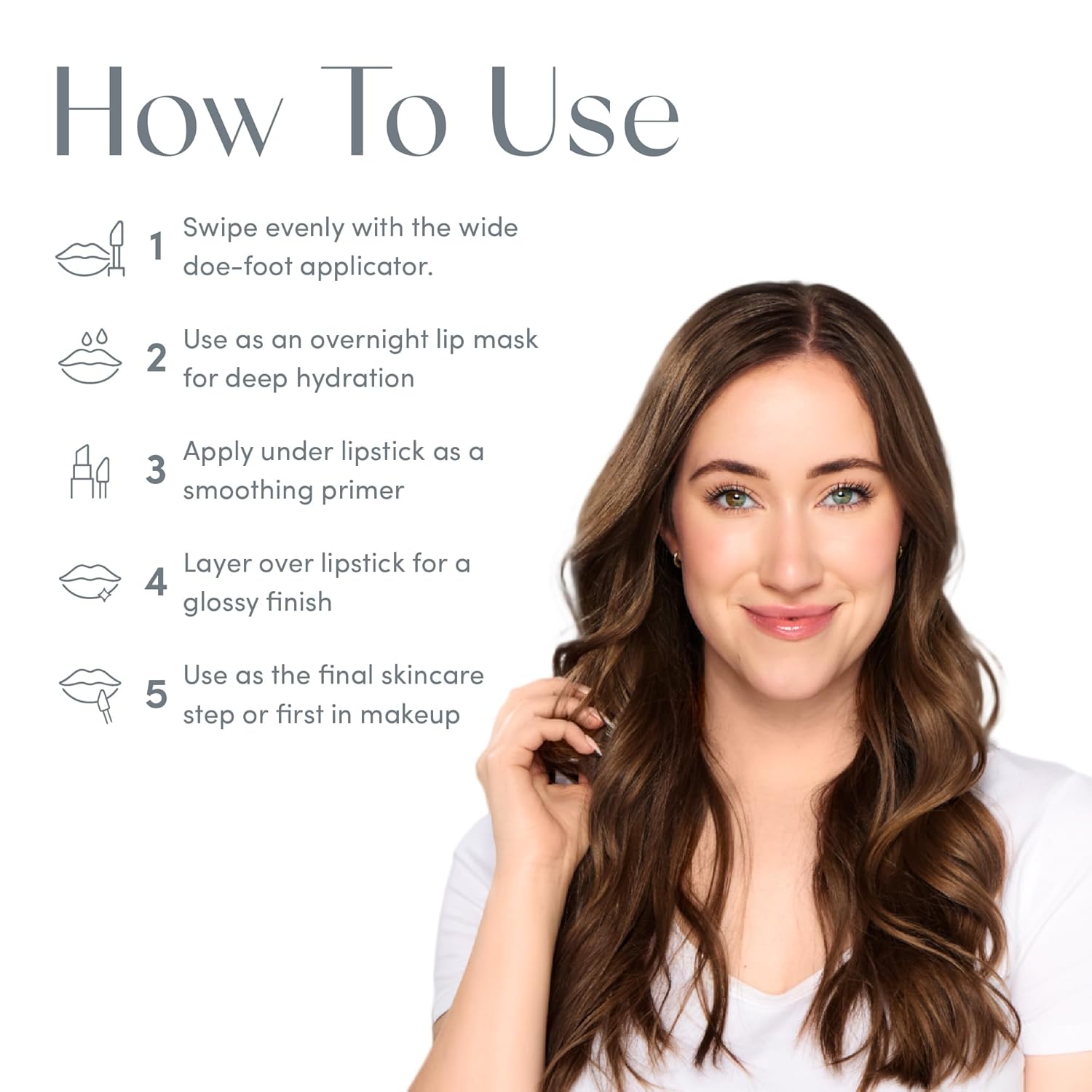 - The wide doe foot applicator glides smoothly across the lips, delivering even coverage every time. With just the right balance of richness and comfort, the formula stays in place without feeling sticky, providing powerful nourishment day or night.