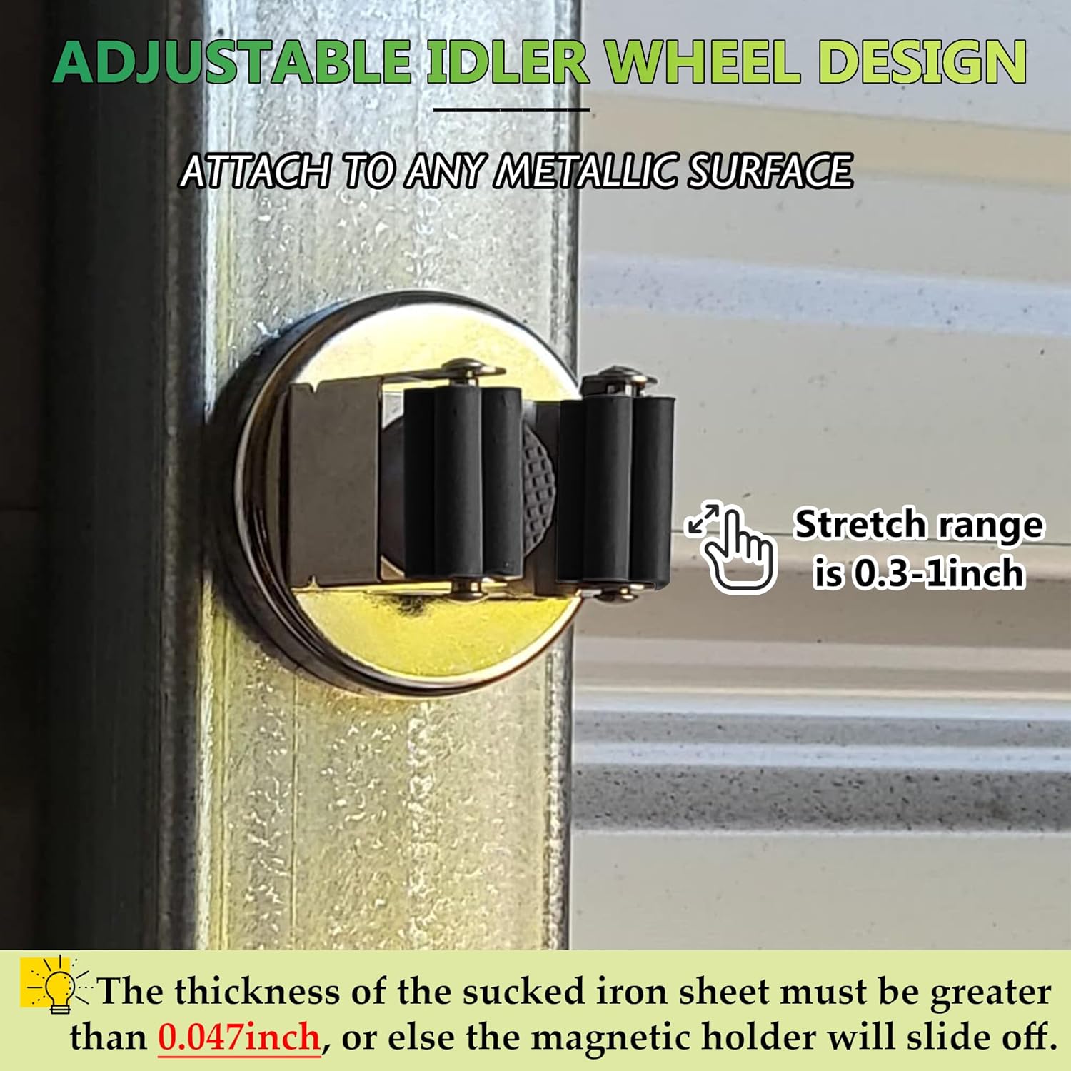 - [Magnetic Mop Broom Holder]: Magnetic mop broom holder with petal shaped rollers. With strong grip and friction to prevent tools from slipping. Keep your cleaning tools organized and within reach. Free up valuable floor space