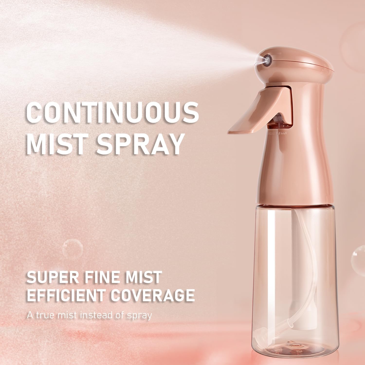 - 360Β° Mist Sprayer - Provides just the right amount of moisture without over-soaking. The 0.3mm nozzle delivers a fine mist that won't over-wet your hair. Our continuous spray bottle allows you to easily spritz and mist hard-to-reach areas with long-lasting bursts of mist from a gentle squeeze.