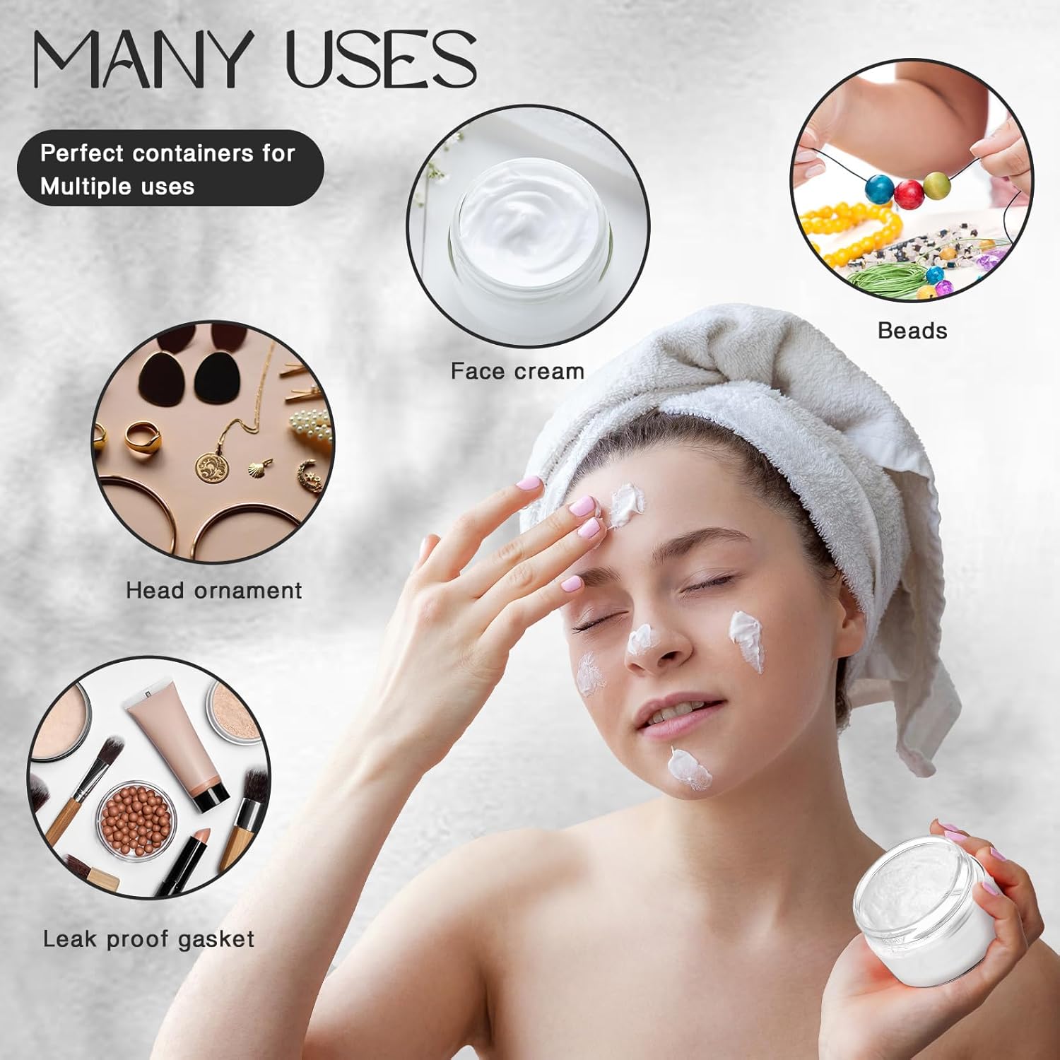 • Multifunctional Containers: you can use these plastic jar containers with lids to store your personal beauty products for travel, ideal to dispense; You can also use it to store homemade sugar scrub cream, body lotions, bath butter soap gifts, body butters and hair moisturizers, small and easily lost jewelry, small crafts like beads, seasonings, acrylic paints, flower seeds, rhinestones etc., which will keep your things organized and make your life more convenient