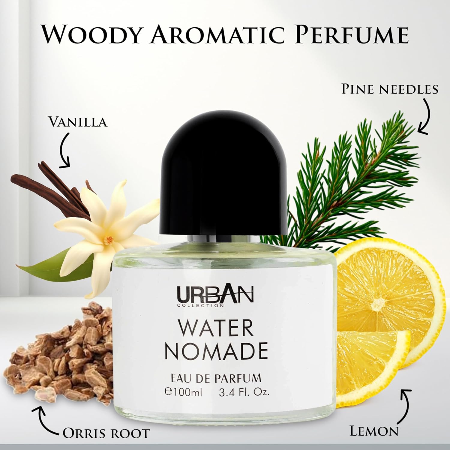 - Scintillating Scent: Urban Collection’s Water Nomade captivates both men and women with its clean, versatile scent, surrounding the wearer with a smoky, warm aroma that comforts the senses and leaves a lasting impression in its wake.