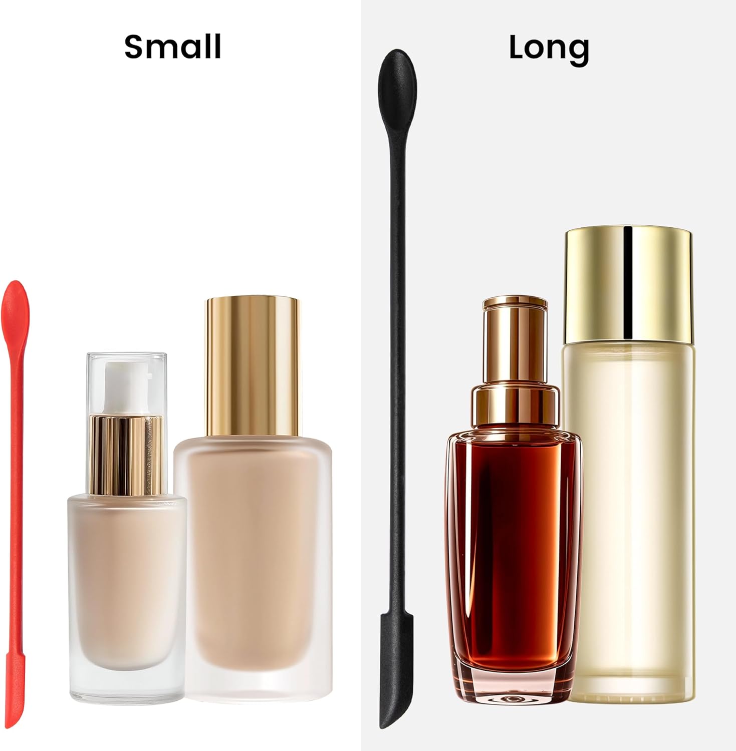 - 1.What you will get. Come with one 9.2 inch length red makeup spatula and one 6 inch length black mini spatula for cosmetics. Double-ended design, one side is mini spoon and the other side is silicone scraper