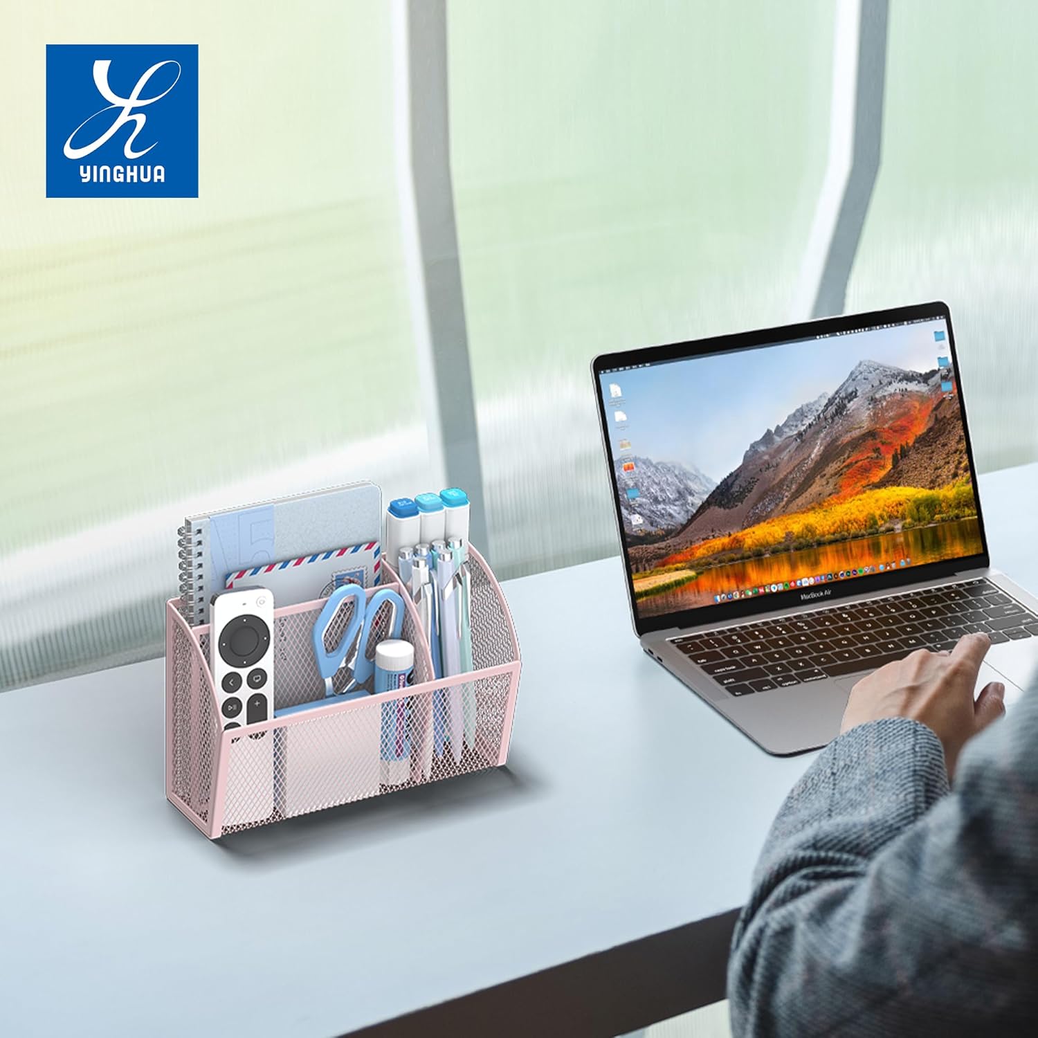 - Smart 3-Compartment Design for Better Organization โ Featuring three neatly divided sections, this sleek pink pen organizer for desk keeps pens, clips, sticky notes, and desk supplies neatly sorted. The open mesh design allows easy visibility and quick access, making it an ideal desk organizer caddy for a clutter-free workspace, home, or school