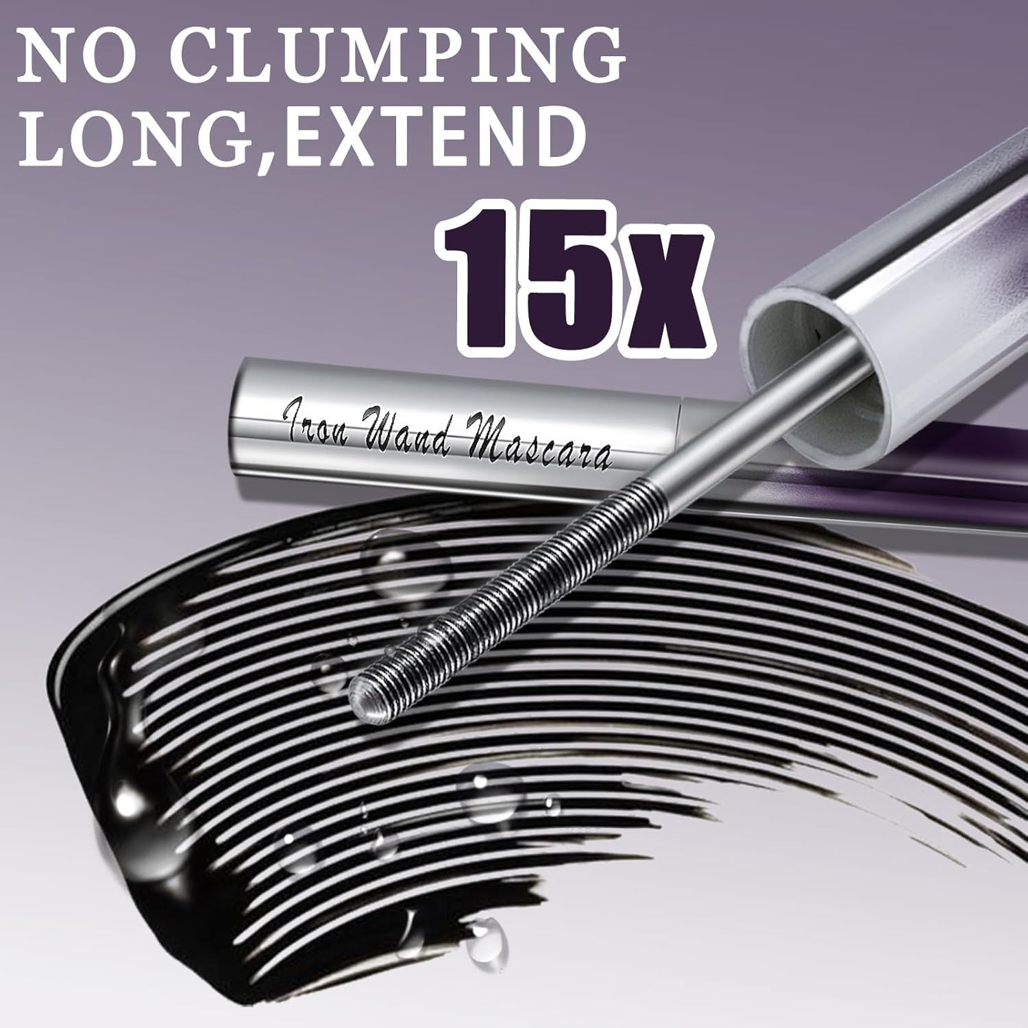 Iron Wand Mascara, Metal Mascara Wand, Black Washable Metal wand mascara, 3d Curling Eyelash, Added Fiber, Waterproof Natural Length Slim Volume Building