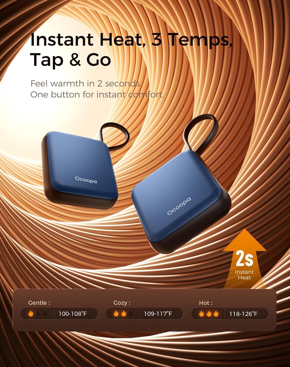 - Instant Heat in 2 Seconds: activate and warm up immediately. 3 adjustable temperatures to match your preferences — from gentle warmth to deep heat.